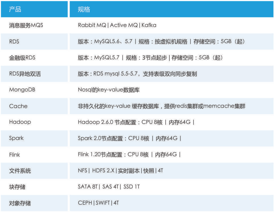 服务与公共组件平台,提供关系型数据库、消息中间件、块存储、