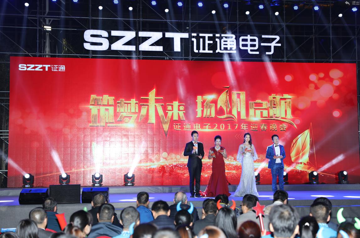 2017年1月18日晚,“筑梦未来·扬帆启航”证通电子2017年迎春晚会在深圳市证通电子产业园璀璨启幕。证通电子总裁曾胜强先生携夫人、证通电子常务副总裁许忠慈先生等领导、嘉宾及公司全体同仁齐聚一堂,共襄盛举,为2016的累累硕果喝彩,也为2017的热血出征燃起熊熊之火。