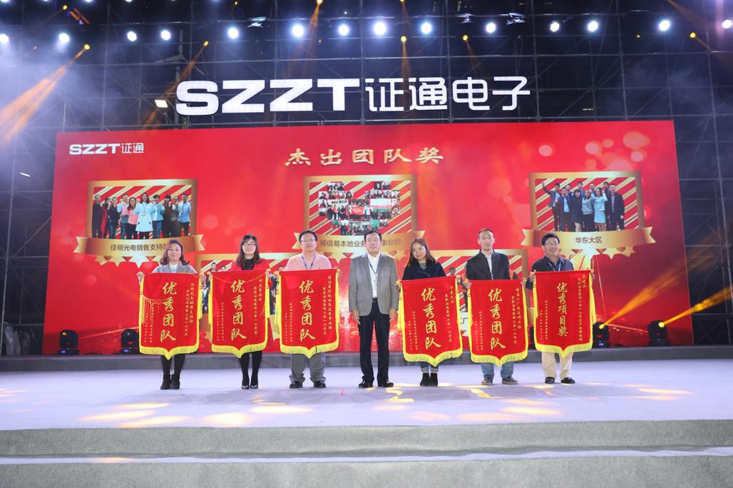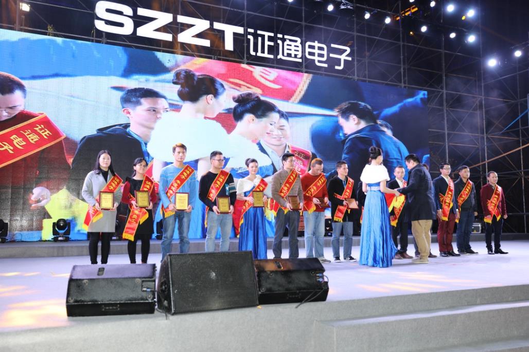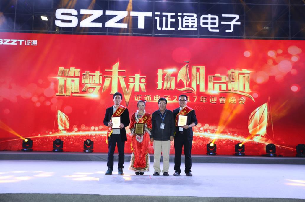 曾总提出,“2017年证通电子应明确战略目标,把握业务方向、思路以及重点工作,推进管理升级,形成管理沉淀,丰富证通的组织文化;改善组织机能,形成目标导向的组织绩效管理;提升人员素质和基本技能。2016年证通电子成绩卓然,2017年更该奋起。筑梦未来,扬帆启航”。在证通电子总裁曾胜强先生的精彩致辞过后,迎春晚会暨2016年度表彰大会正式开始。本次大会共表彰了2016年具有杰出表现的年度优秀员工70名、杰出员工3名及优秀团队5支,并由到场领导为他们颁发绶带、锦旗和获奖证书。