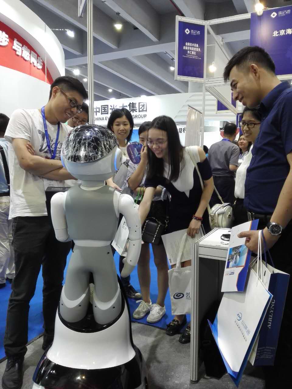 昨日(6月25日),历时三天的第六届中国国际金融交易·博览会(以下简称“金交会”)在广州圆满闭幕。本届金交会以“金融新格局 增长新动能”为主题,展览总面积4万平方米,参展机构共356家,设立18个主题展区,130多位金融专家学者出席论坛活动。此次与证通电子一同征战金交会的是一款智能机器人FINBOT,三天展会中,FINBOT在现场可谓是吸粉无数。