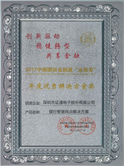 近日“金鼎奖”的各项大奖正式出炉,证通电子的银行智慧网点解决方案获“年度优秀解决方案奖”。