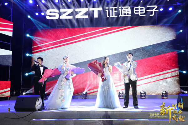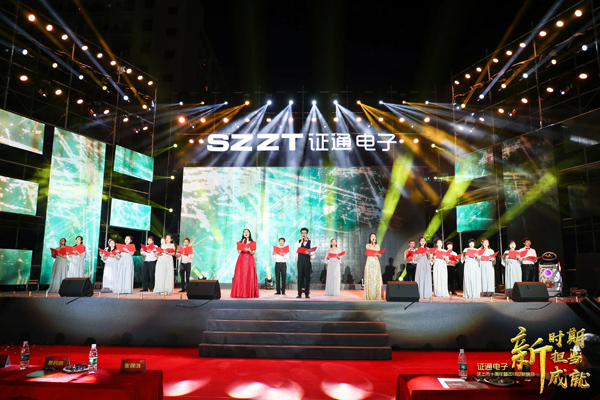 2017年12月29日,“证通电子庆上市十周年、迎2018新年晚会”在深圳光明新区证通电子产业园盛大开幕,本次晚会的主题为“新时代、新担当、新成就”。恢宏的露天式大舞台、耀眼的光柱、璀璨的屏幕,今夜我们欢聚一堂、载歌载舞,为了庆贺证通电子上市十周年的辉煌成就,同时也预祝新时代下证通能够继续蓬勃发展。