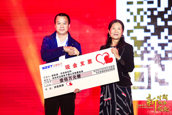 多年来证通一直致力于做一家勇于承担社会责任的公司,“证通爱心互助基金会”至今已帮助139人次。今年的晚会现场,公司总裁曾胜强和夫人许忠桂共同以个人名义,为爱心互助基金会捐献100万元人民币。