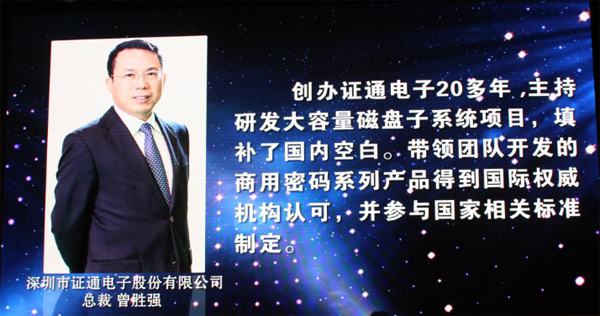 颁奖现场,由广东省关心下一代工作委员会主任、广东省人大常委会原主任张帼英向获得“深圳工业家大奖”的工业家颁发奖杯,由第十届全国人大常委会副委员长、中国关心下一代工作委员会主任、中国工业经济联合会名誉会长顾秀莲向获得“深圳工业大奖”的企业颁发奖状,证通电子均名列在册。
