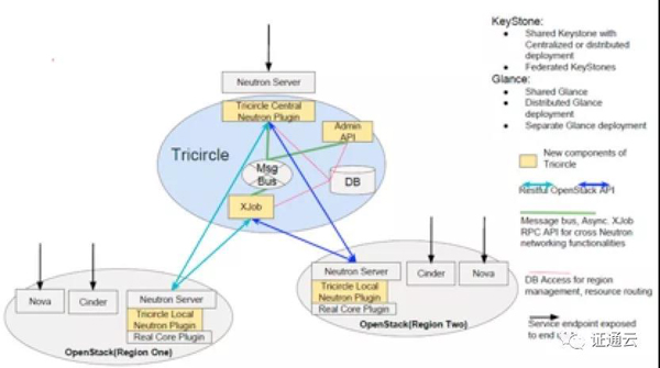 图2 OpenStack 多云级联官方组件Tricircle架构图