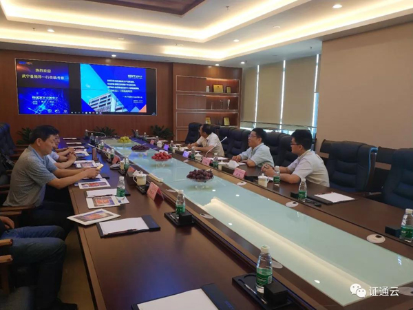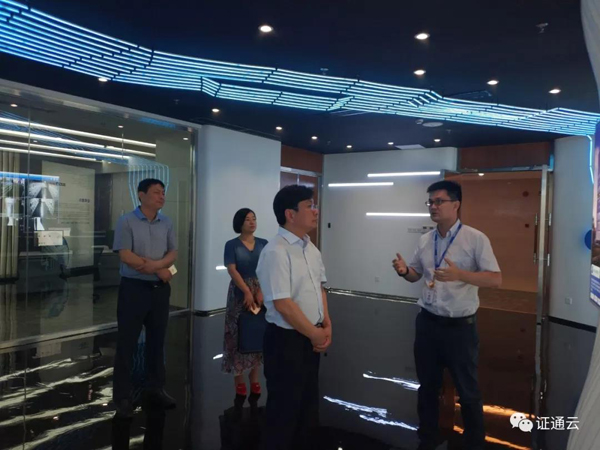 李广松一行先后参观了云计算展厅和数据中心,详细了解公司IDC业务板块的运营情况,随后与证通电子参会人员在14楼会议室举行座谈,并就智慧城市的运营模式进行了深入交流,同时也积极宣传武宁独特的环境优势。考察中,李广松对公司在IDC及云计算方面取得的成绩给予了高度评价。
