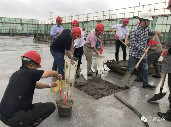 深圳证通电子股份有限公司常务副总许忠慈、长沙证通常务副总张伟松、副总邓军、财务总监易海军等出席本次活动,监理、施工公司相关领导也莅临现场,共同见证此次封顶完成。