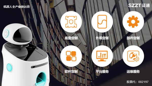 证通公共服务机器人高度集成与协同了运动系统、视觉系统、语音系统、触碰系统等多维度的传感器,实现了场景化业务办理、主动迎宾接待、位置指引、人脸识别、人脸跟随、语音交互、物联协同等功能,形成的相关专利覆盖:智能算法、机械传动、场景应用、机器人服务平台、外观结构等多个层面,构造证通在服务机器人市场上的竞争壁垒;同时,证通形成了覆盖全产业链的机器人定制化服务:从行走底盘定制、机械结构、整机外观、机器人应用、机器人服务平台到运营维护,提供基于不同场景的深度定制化服务,帮助客户完成产品快速、高效地落地与实施,有效支撑公司“人工智能+IDC及云计算”协同发展的战略规划。