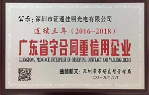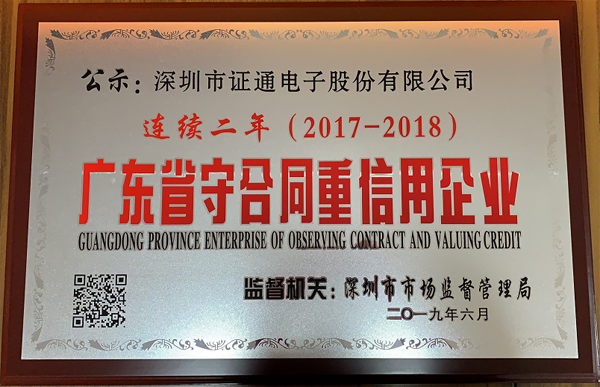 近日,米乐(MILE) 官方网站及旗下两家子公司(深圳市证通佳明光电有限公司、深圳市证通云计算有限公司)分别获深圳市市场监督管理局授予的2018年度“广东省守合同重信用企业”证书。