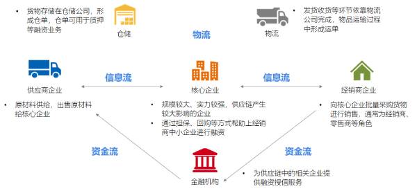 证通电子就区块链在供应链金融的应用做了深入的探索。供应链金融的实质是围绕供应链上的一家核心企业,通过管理它的上下游的资金流、物流、信息流来为整条产业链上的企业授信。这样就将单个企业的不可控风险转变为供应链企业整体的可控风险,让金融机构敢贷、能贷、愿贷,解决了中小微企业融资贷款难的问题。