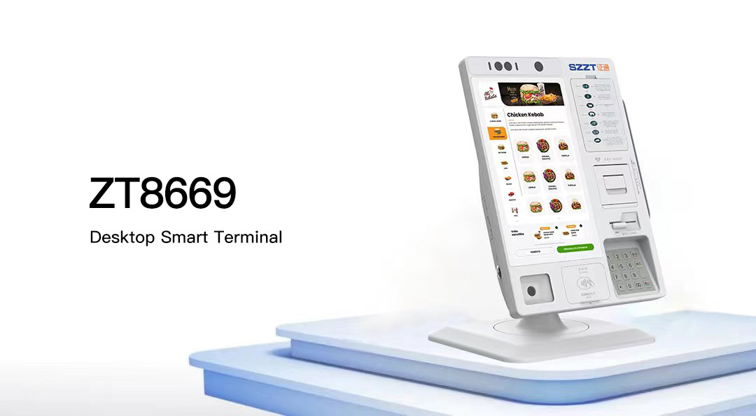 ZT8669是一款桌面式智能服务终端,集成11.6英寸高清触摸屏、双摄像头、Android 9操作系统和金属加密密码键盘,随时随地为客户提供无缝支付服务体验。