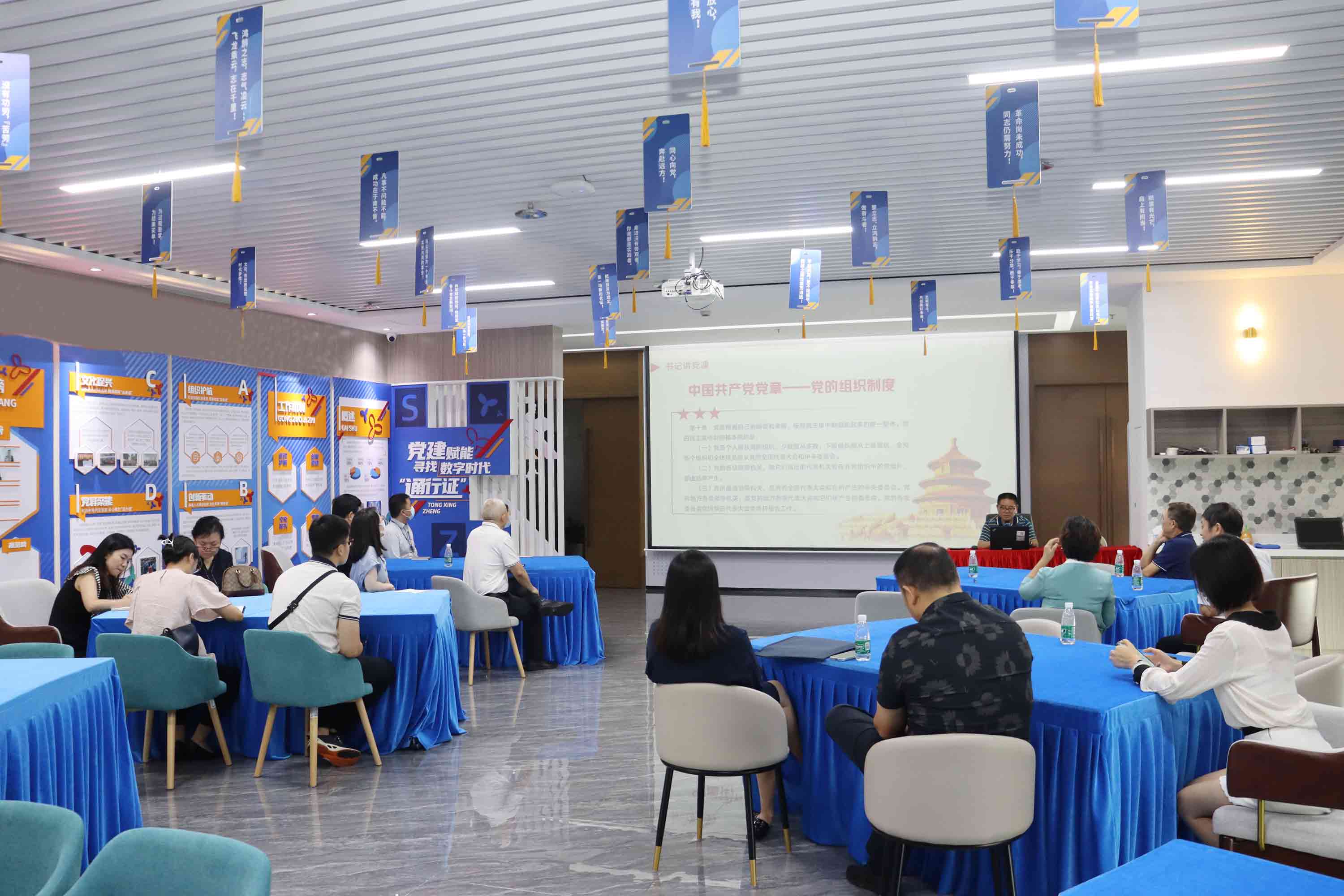 证通电子党员代表表示:作为民营企业,我们也高度重视党建工作,在寸土寸金的深圳,为公司党员提供了140余平的党建学习区域,促进新时代党建工作推进和开展。