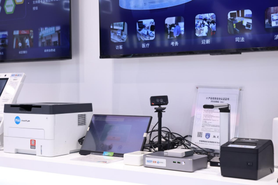 在智慧政务场景,推出了基于政务办公场景的解决方案,该方案融合证开鸿设备全家桶、云服务和AI大模型,搭载了CCRC EAL4+金融级安全的LightBeeOS操作系统,可实现设备间无缝访问和数据安全互联。