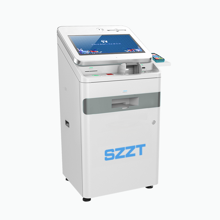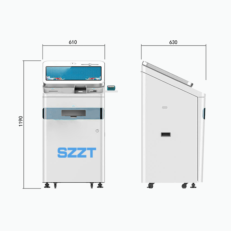 21.5寸幻彩屏幕、高度集成终端,站姿操作,屏幕中心距离地面高度1100mm,屏幕倾角呈水平20°,在此条件下,客户操作触摸屏时四肢的移动幅度最小,使用体验最佳。
