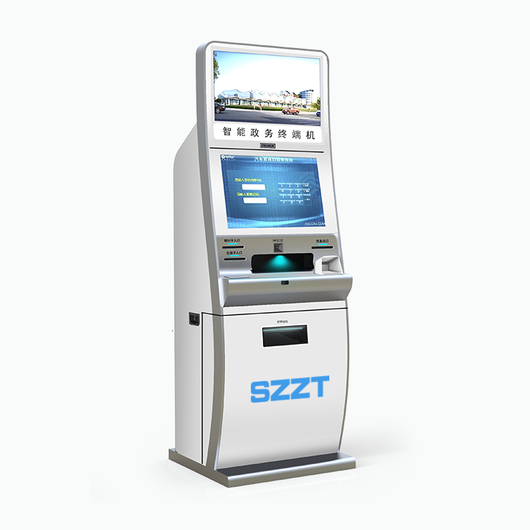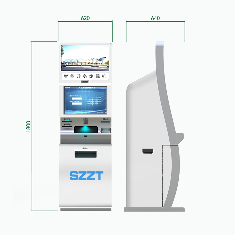 双21.5寸屏-ZT2X-舟系列,柳叶形外观,将叶子的曲线柔美融入钢材,使金钢展现端庄柔和之美。既能体现业务办理机构的严肃认证的态度,又展现出对人的关怀备至。双21.5寸炫彩大屏,广告、业务办理两不误。集人脸识别、二代证、凭条打印、高拍、数字键盘输入、条码扫描等功能于一体,部件与外观、UI设计可定制化,满足全行业客户要求。